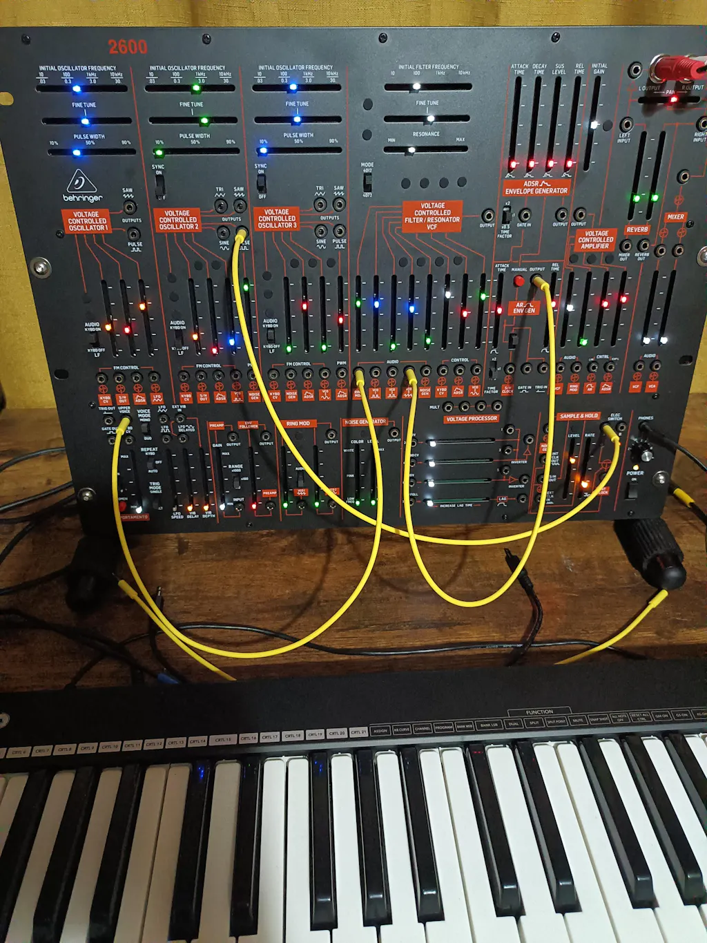yellow modular synth audio patch cables